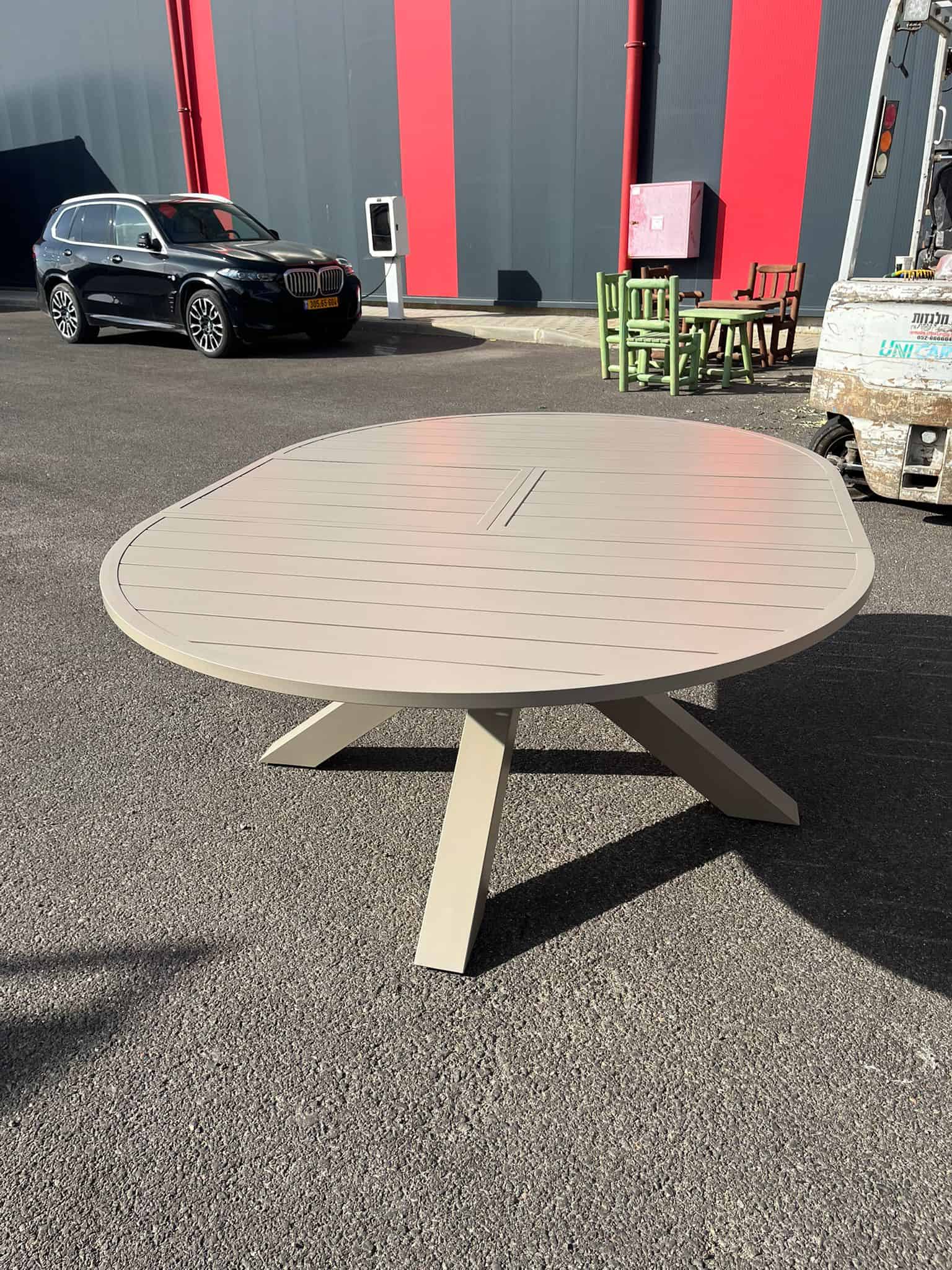 מבנה השולחן עשוי אלומיניום עם פסי אלומיניום מעל