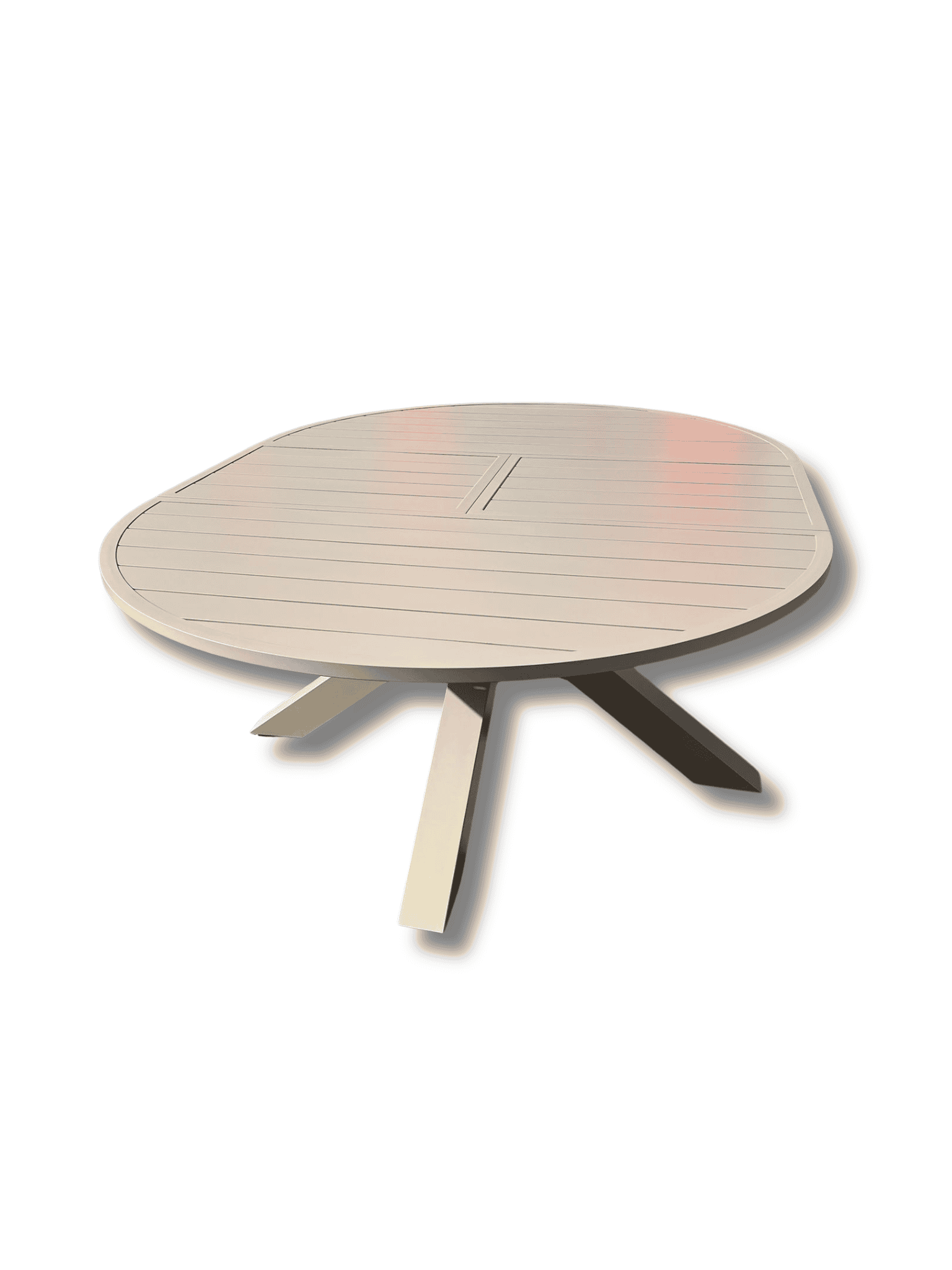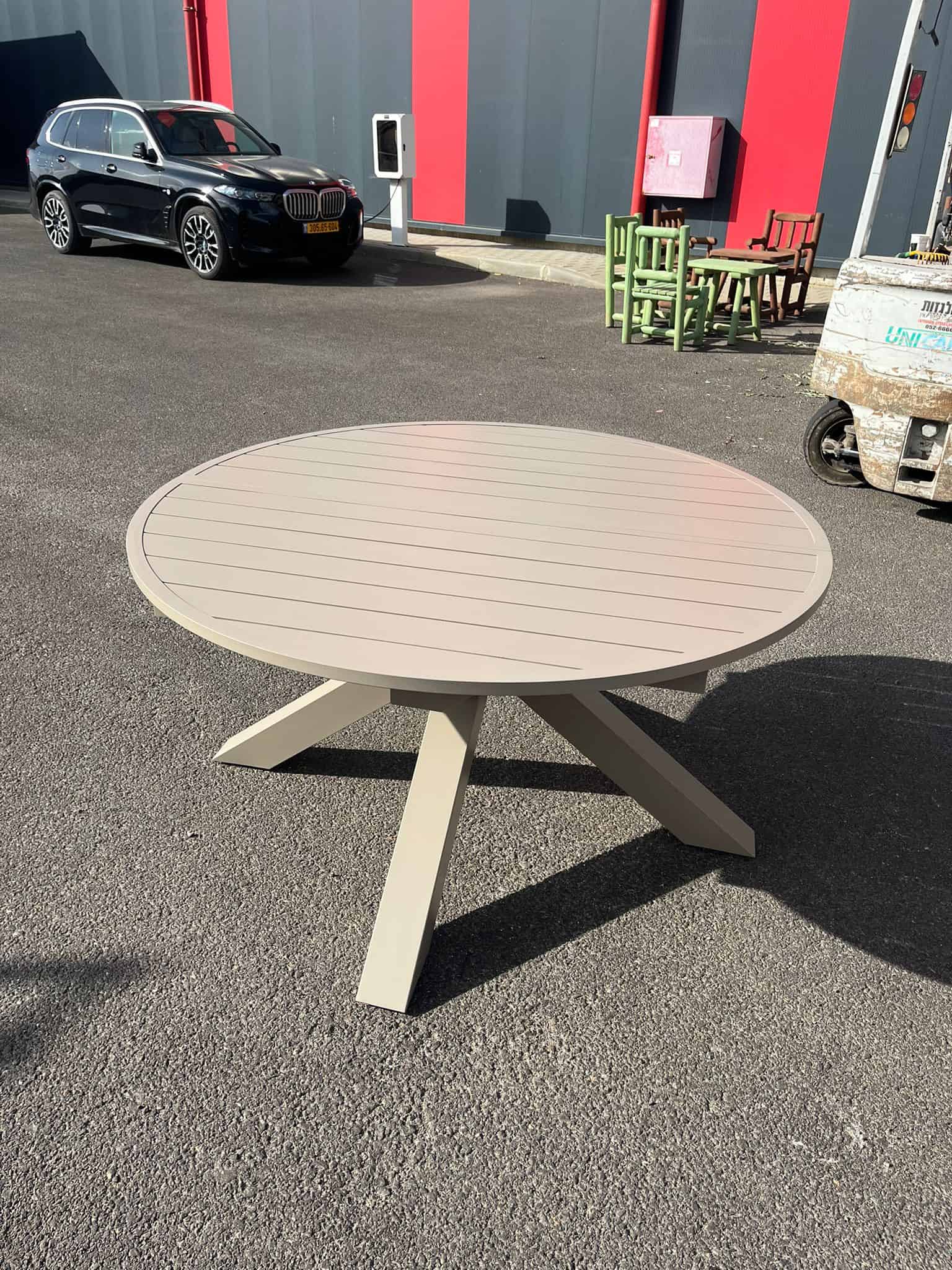 המשטח העליון עשוי פסי אלומיניום, המקנים לו מראה נקי ומינימליסטי לצד עמידות מושלמת לשמש, למים וללכלוך.