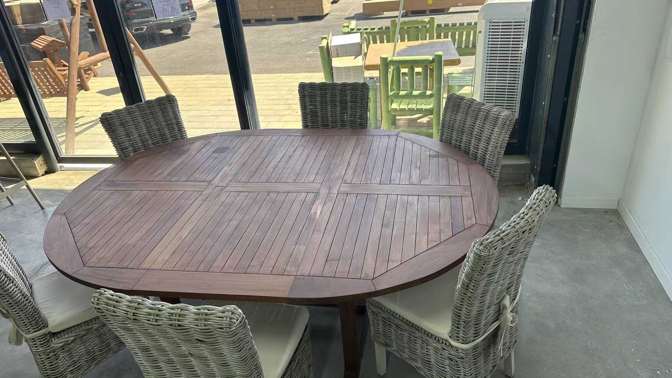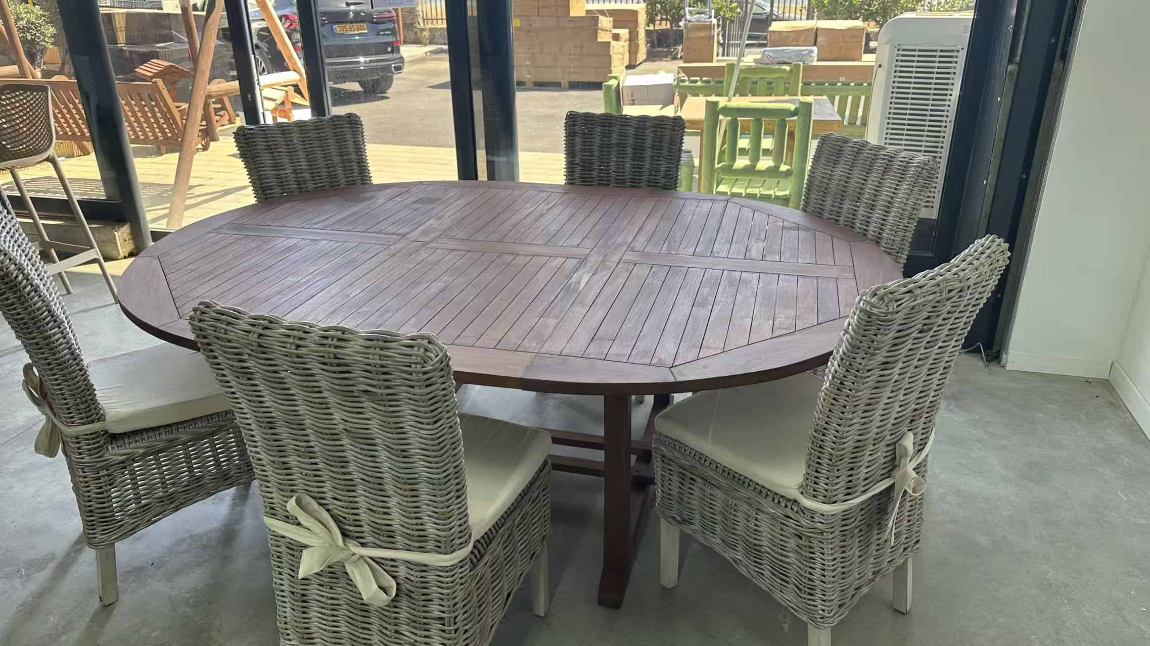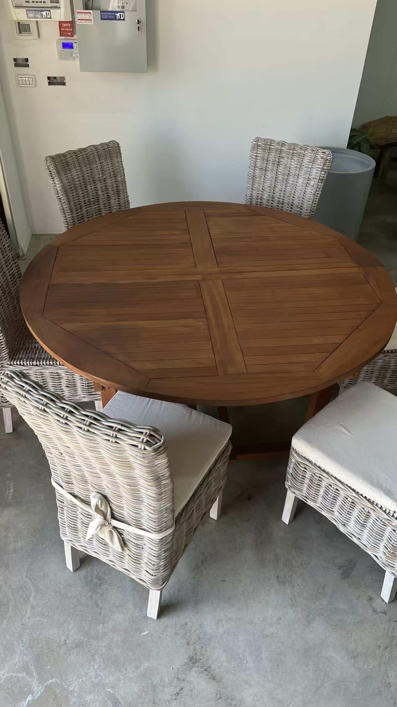 פינת אוכל מהגוני מעניק לגינה או לחצר מראה חמים וטבעי לצד פונקציונליות גבוהה.