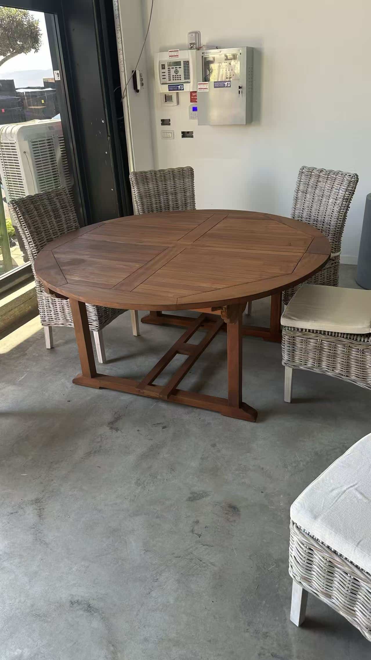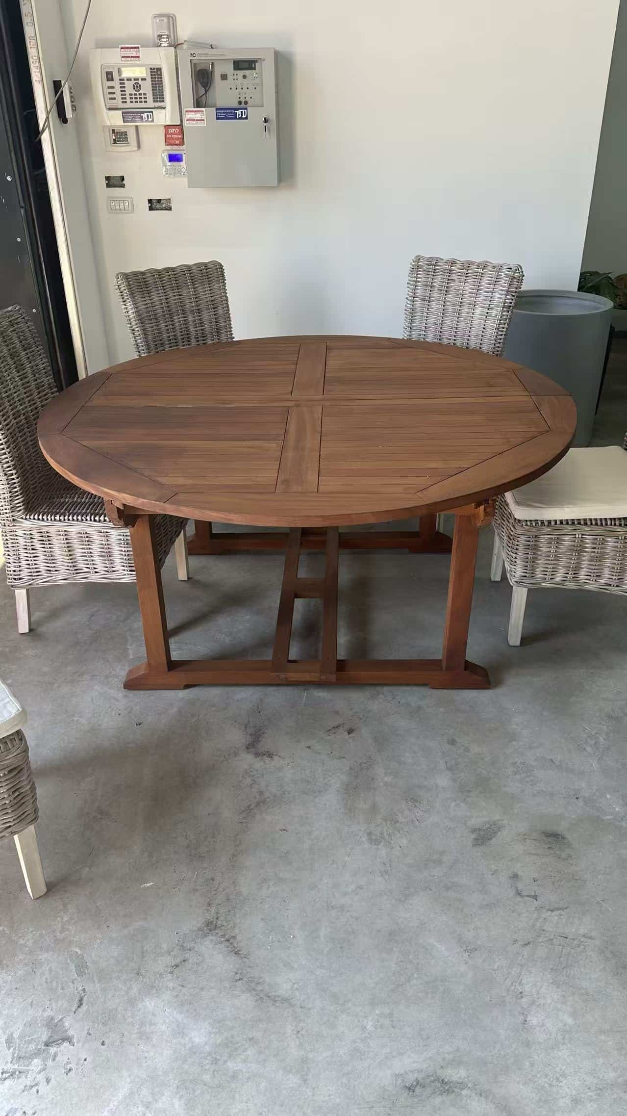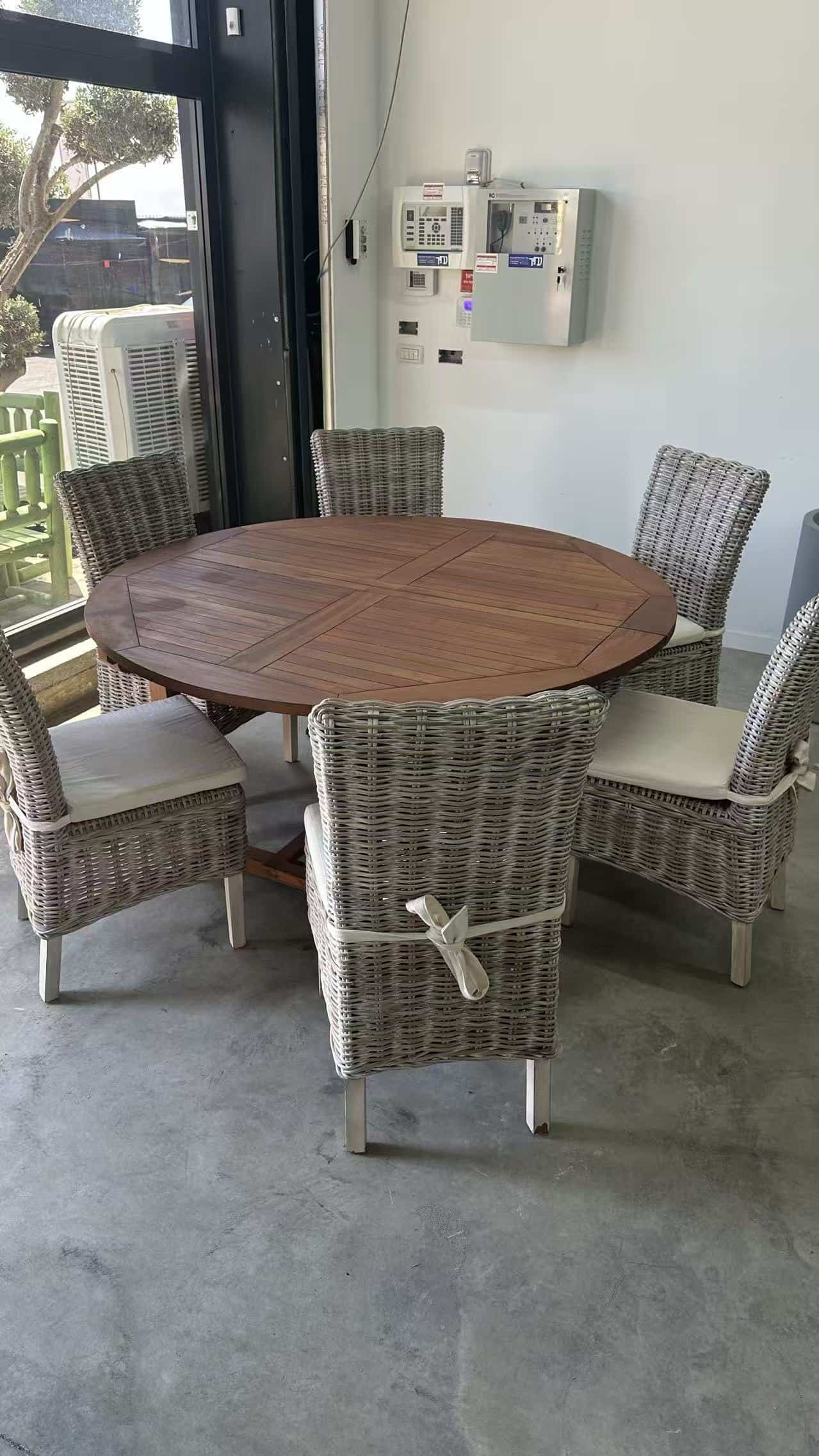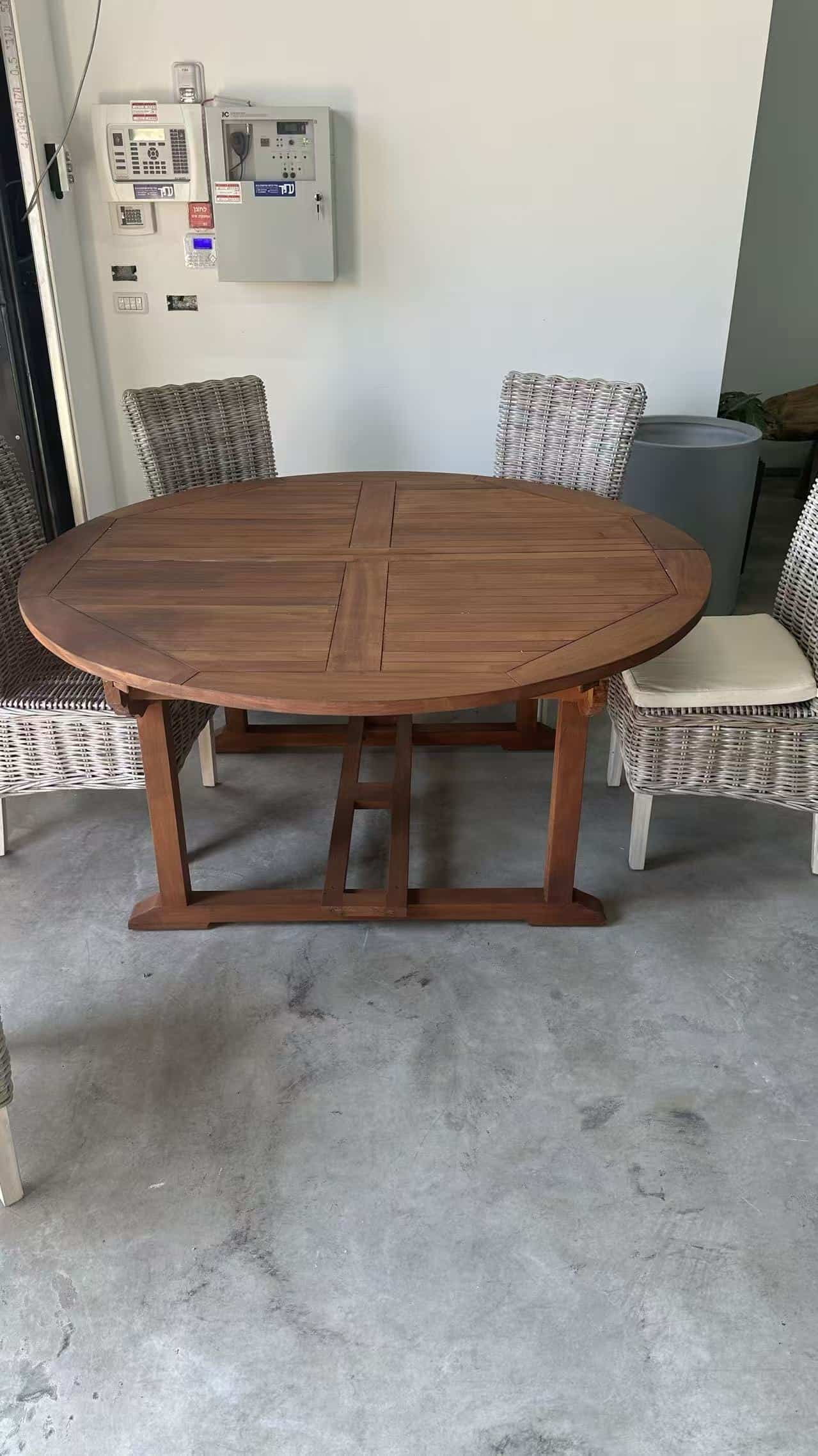 פינת אוכל מהגוני מעניק לגינה או לחצר מראה חמים וטבעי לצד פונקציונליות גבוהה.