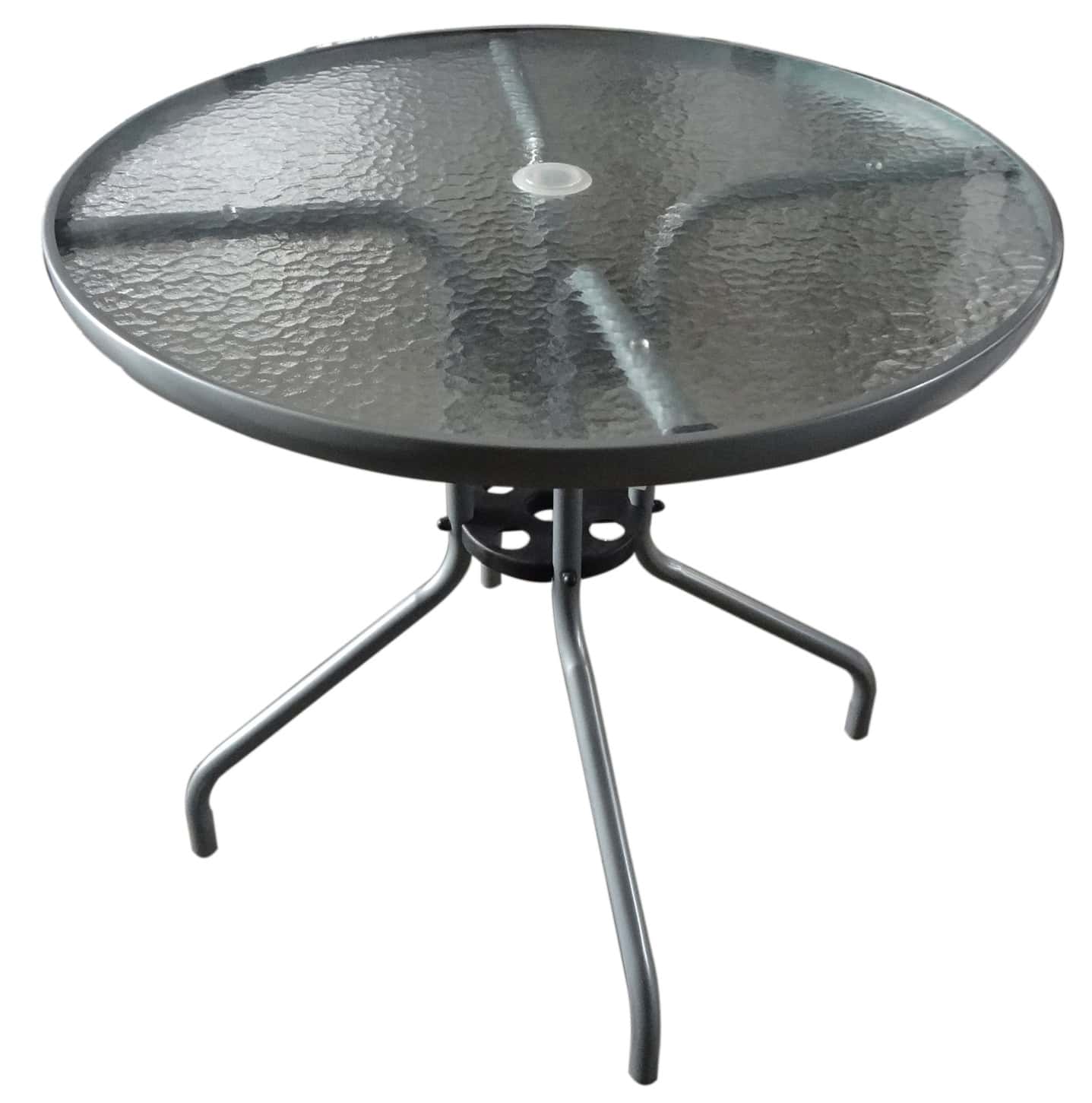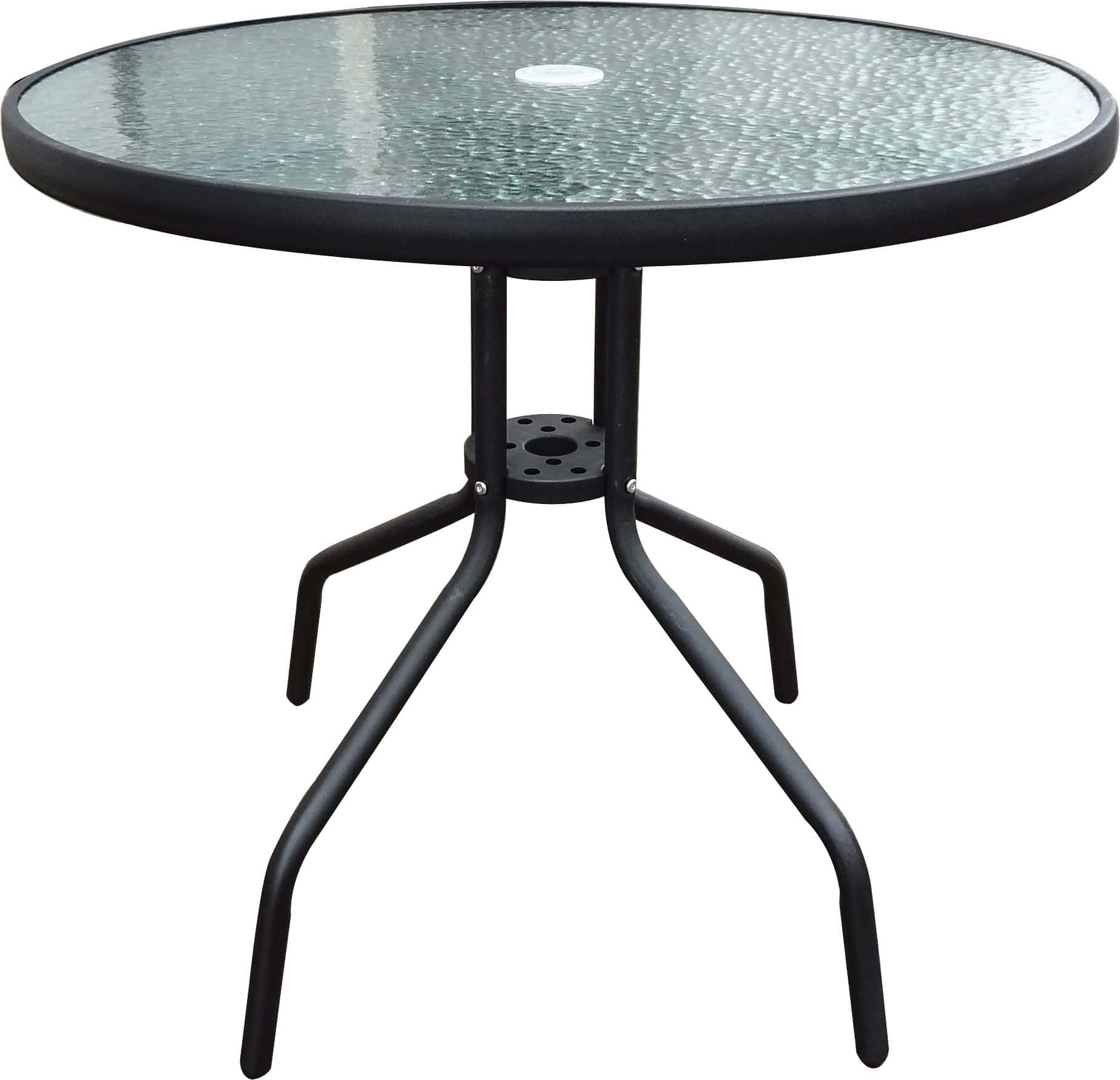 עשוי מבסיס מתכת יציב במיוחד עם משטח זכוכית מחוסמת בקוטר 80 ס"מ.